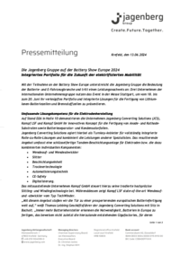 Krefeld, den 13.06.2024 Die Jagenberg Gruppe auf der Battery Show Europe 2024 Integriertes Portfolio für die Zukunft der elektrifizierten Mobilität Mit der Teilnahme an der Battery Show Europe…