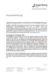 Jagenberg Gruppe präsentiert unternehmensweite Nachhaltigkeitsstrategie Krefeld, 3. Juli 2023. Die Jagenberg Gruppe feiert eine ganz besondere Premiere: Die internationale Unternehmensgruppe mit Sitz…